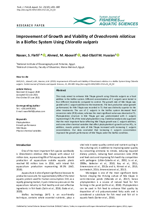(PDF) Improvement of Growth and Viability of Oreochromis niloticus in a ...