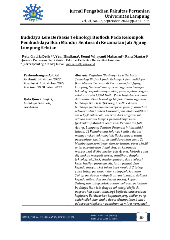 (PDF) Budidaya Lele Berbasis Teknologi Bioflock Pada Kelompok ...