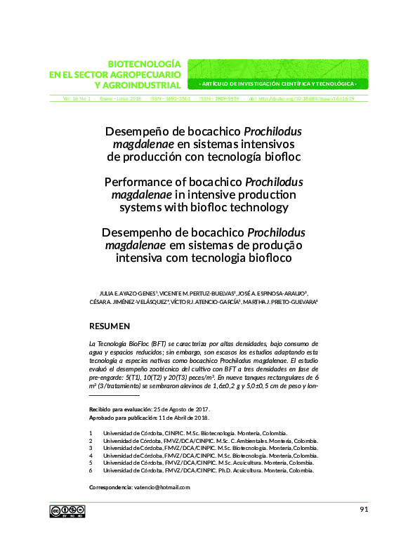 (PDF) Desempeño de bocachico Prochilodus magdalenae en sistemas ...