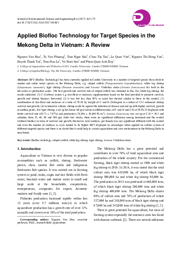 (PDF) Applied Biofloc Technology for Target Species in the Mekong Delta ...