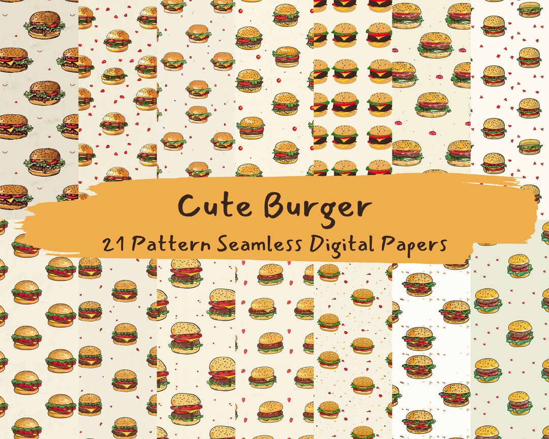 Cute Burger Pattern Seamless Digital Papers - Printable Scrapbook Paper ...