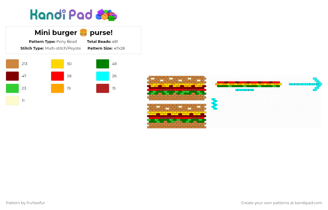 Mini burger 🍔 purse! Pony Bead Pattern - Kandi Pad | Kandi Patterns ...