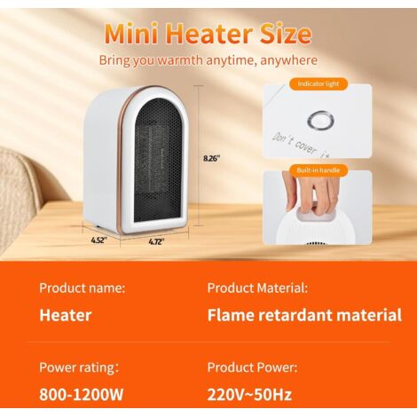 Calefactor cerámico auxiliar de 1200 W,mini calefactor eléctrico para ...