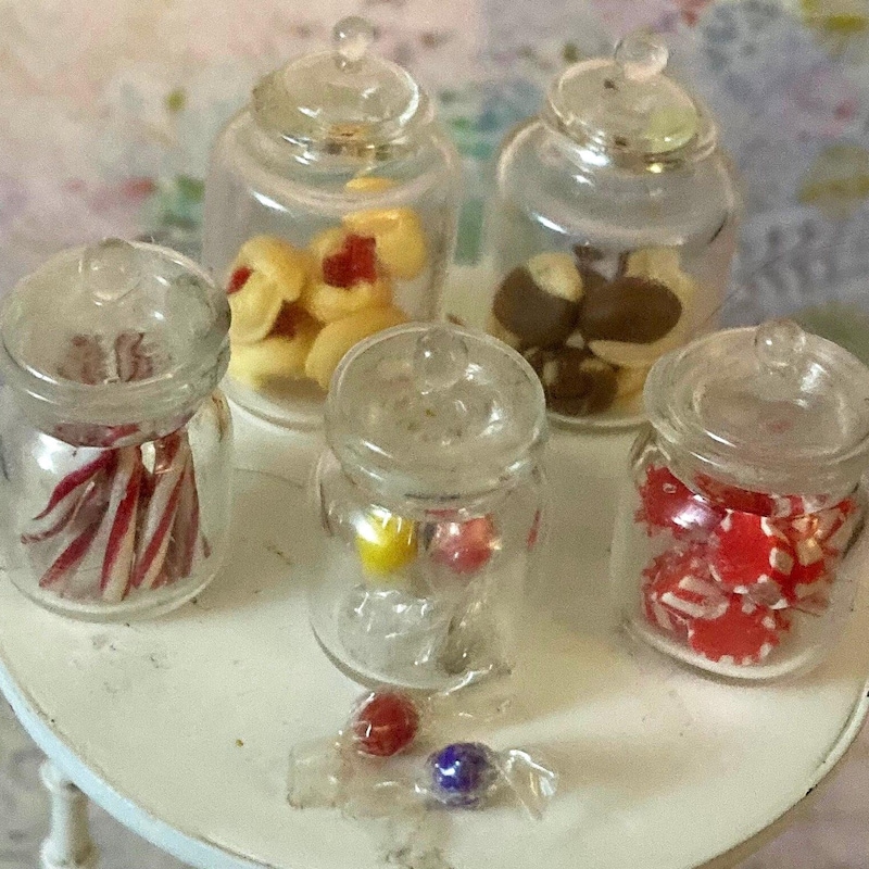 Miniature Candy Jar, Set of 4 Miniature Christmas Candy Jars, Dollhouse ...