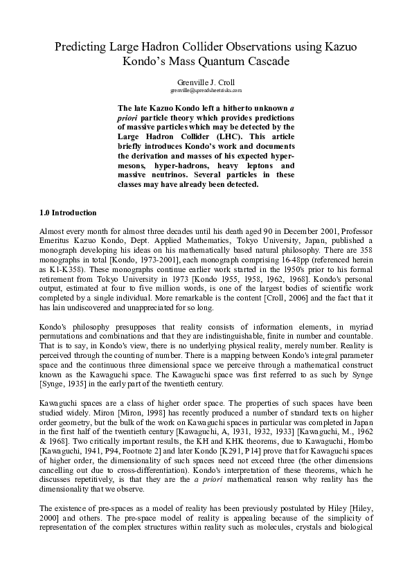 (PDF) Predicting Large Hadron Collider Observations using Kazuo Kondo's ...