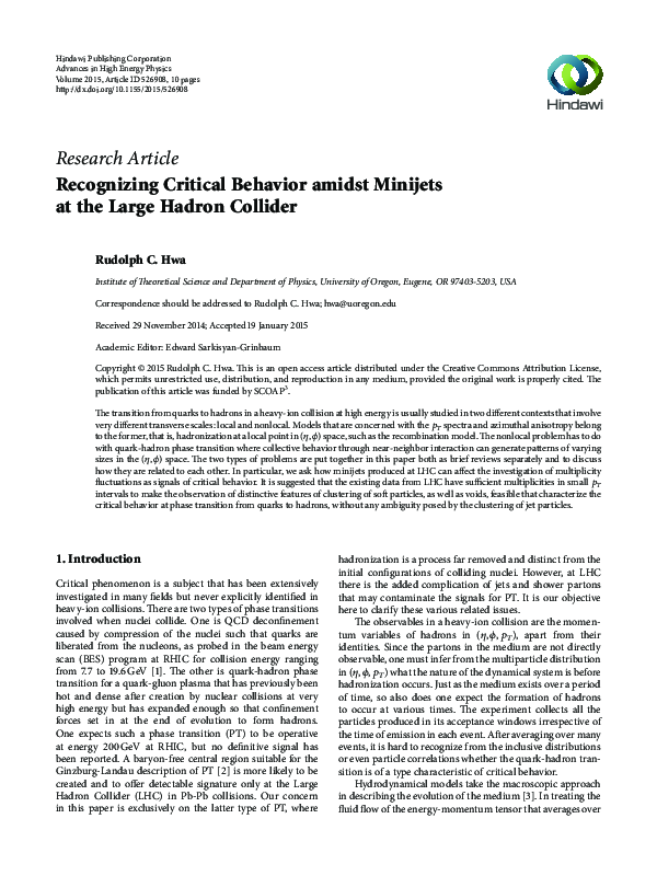 (PDF) Recognizing Critical Behavior amidst Minijets at the Large Hadron ...