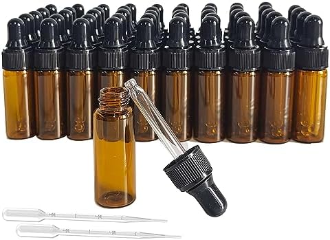 Amazon.com: AGENIZ 50 Pcs 5ml Amber Mini Dropper Bottles Essential Oils ...