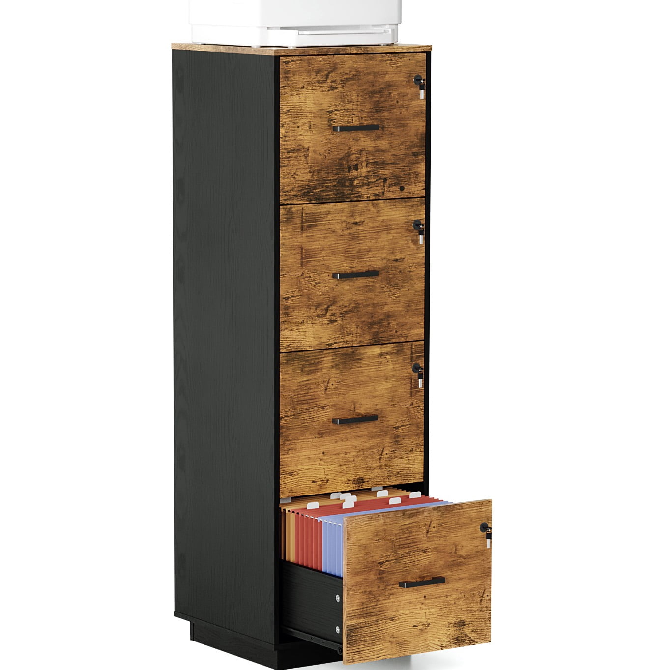 STANI 4 Drawer Black File Cabinet with Lock, Filing Cabinets for Home ...