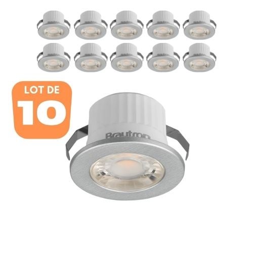 Lote de 10 mini focos LED redondos plateados 3W 6500K IP54 | Leroy Merlin