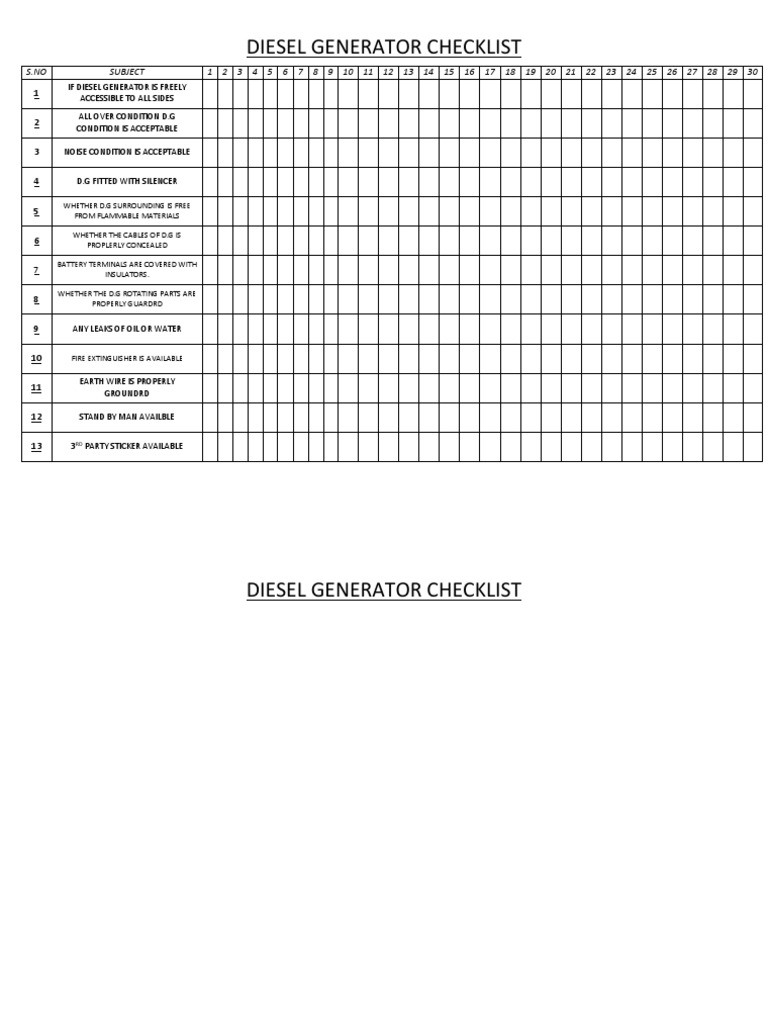 Diesel Generator Inspection Checklist format | Samples | Word Document ...