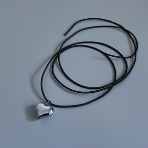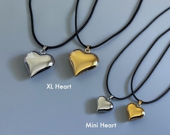 Mini Puffed Heart String Necklace Silver or Gold Black Cord Long Wrap ...