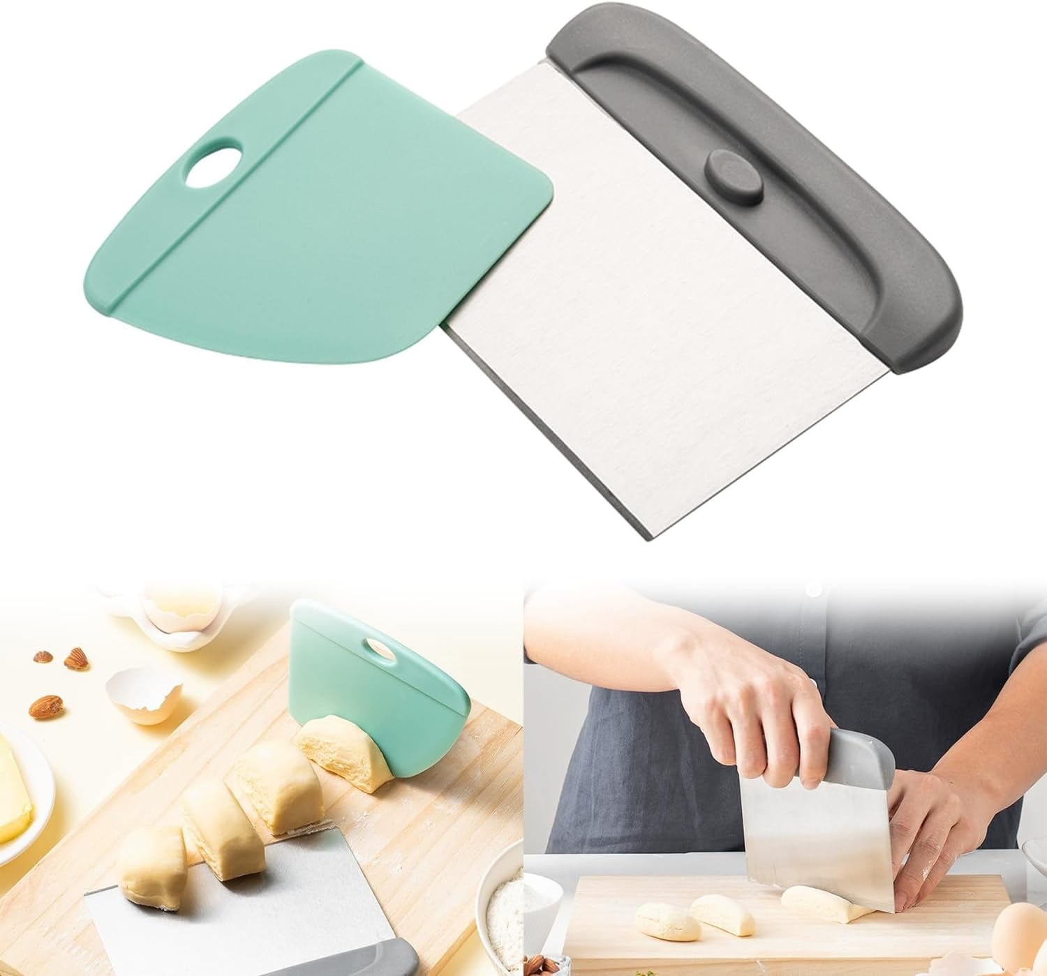 Bench Scraper Kitchen for Bread, Stainless Steel Dough Cutter and ...