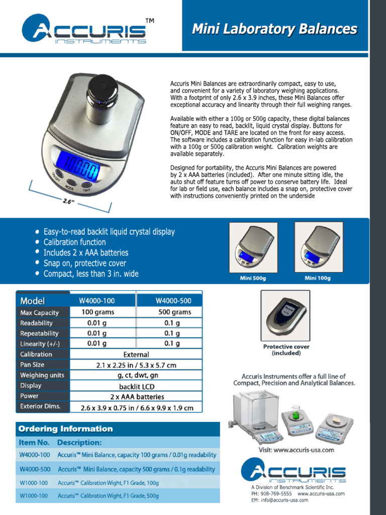 MINI LABORATORY BALANCES, 100G AND 500G- Chemglass Life Sciences