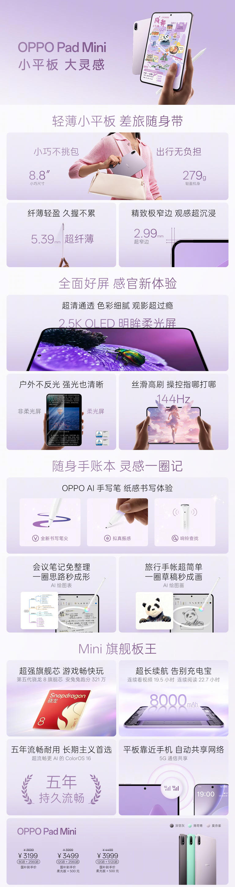 OPPO Pad Mini小平板:骁龙8G5,8.8寸 OLED屏