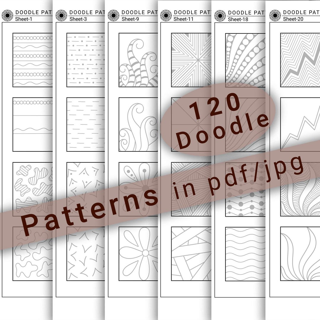 120 Easy Basic Doodle Patterns to Practice in PDF/JPG for Relaxation ...