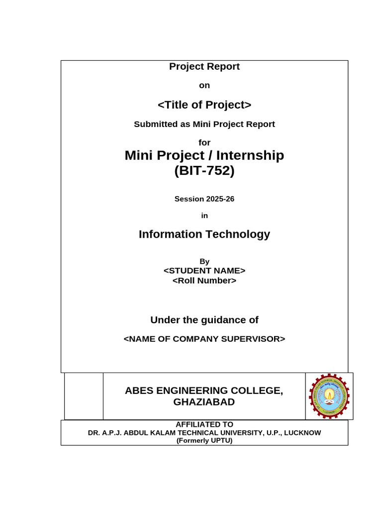 Mini proj report format - MINI PROJECT REPORT ON TITLE:- (SESSION: 2021 ...