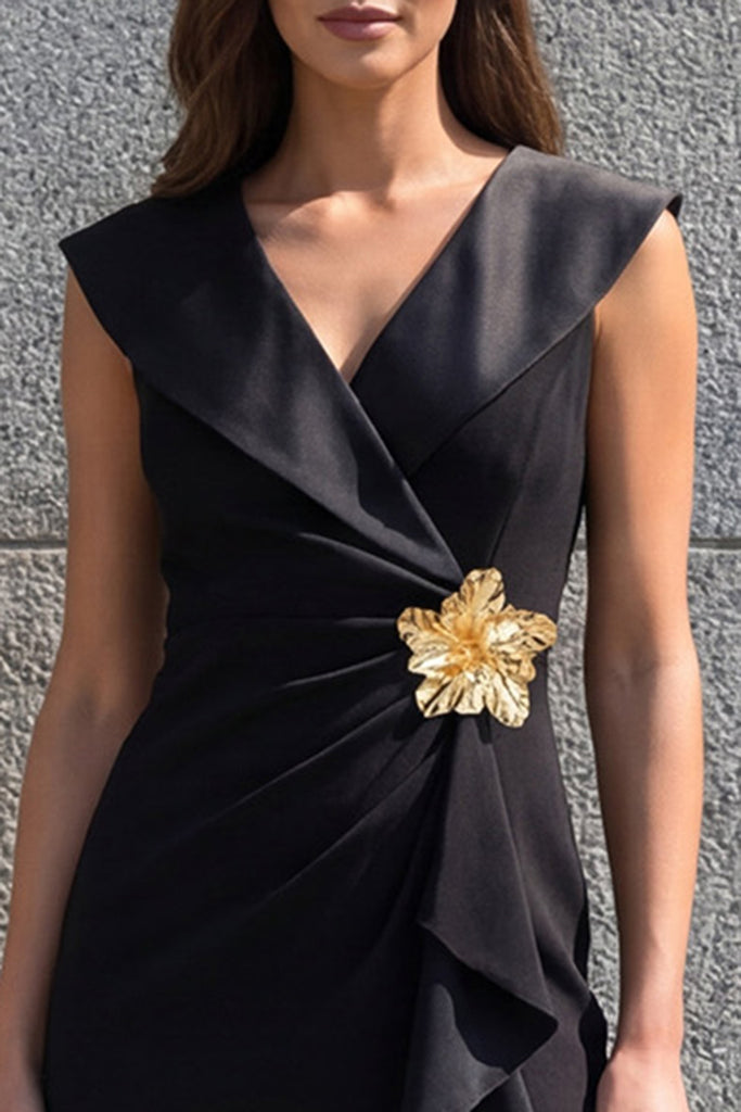 ZAPAKA Women Black Work Dress Sleeveless Ruched V Neck Sheath Mini ...