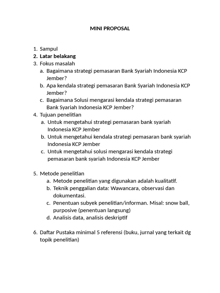 SAMPLE FORMAT FOR A Mini PROPOSAL | PDF