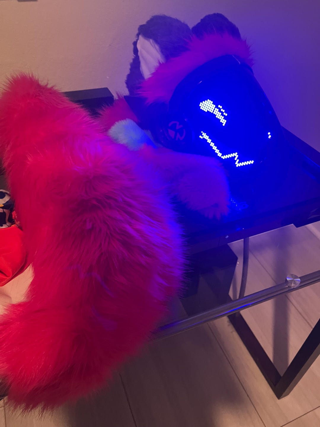 Me, my fursuit, and a mini protogen (plushie not mine) : r/protogen