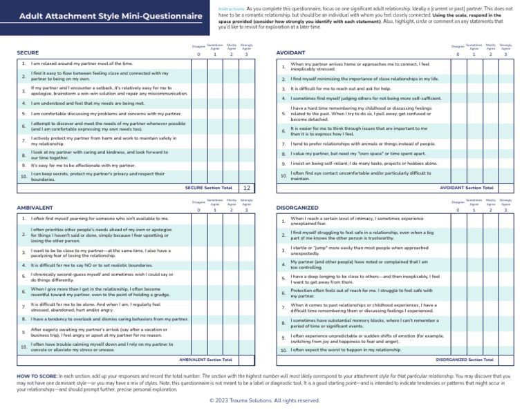 AMP Know Your Adult Attachment Style MINI Questionnaire | PDF ...