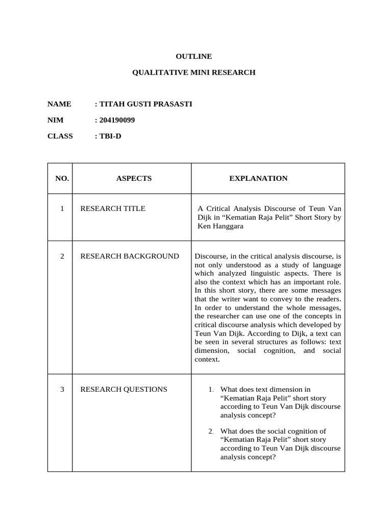 Outline of Qualitative Mini Research | PDF | Science | Liberal Arts ...