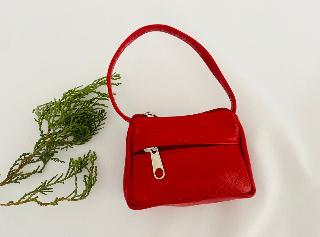 Leather Mini Purse Small Bag Tiny Pouch Coin Purse for Wrist Hot Red ...