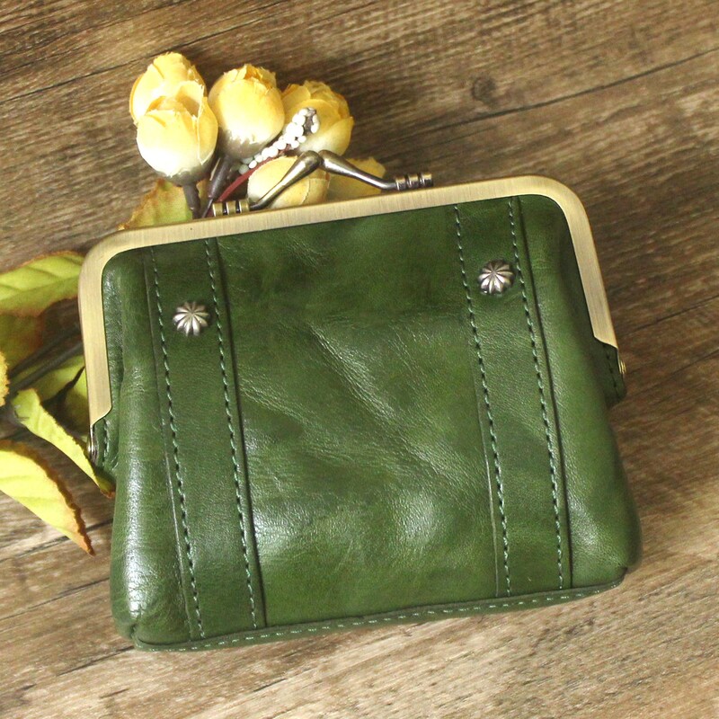 1pc Genuine Leather Mini Coin Purse Compact Vintage Style Pouch Ladies ...