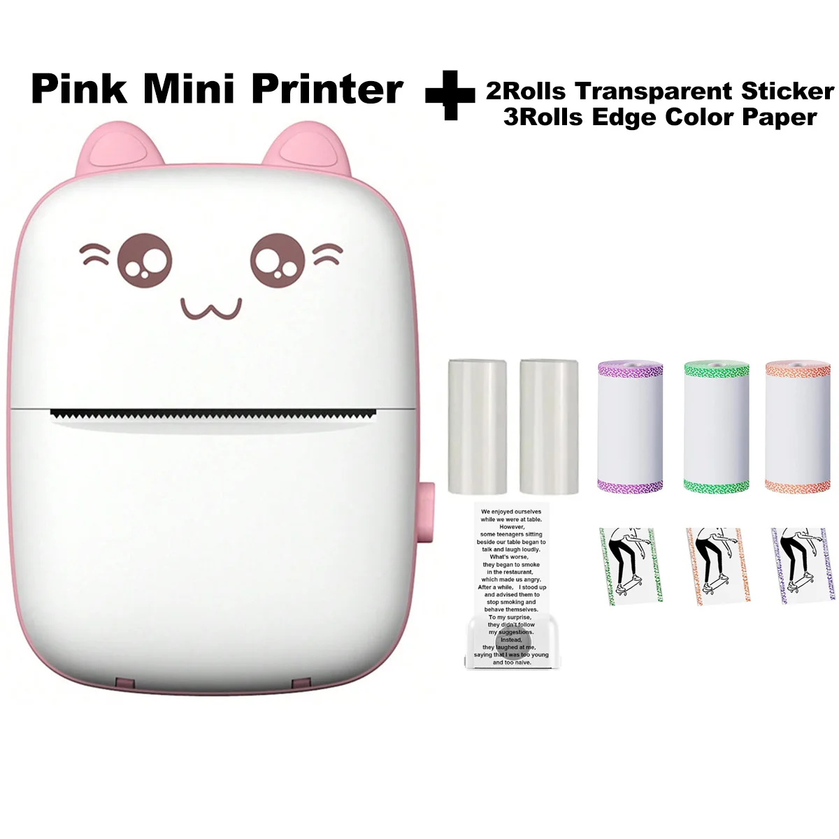 Mini Sticker Printer Portable Thermal Printer With 7 Rolls Paper ...