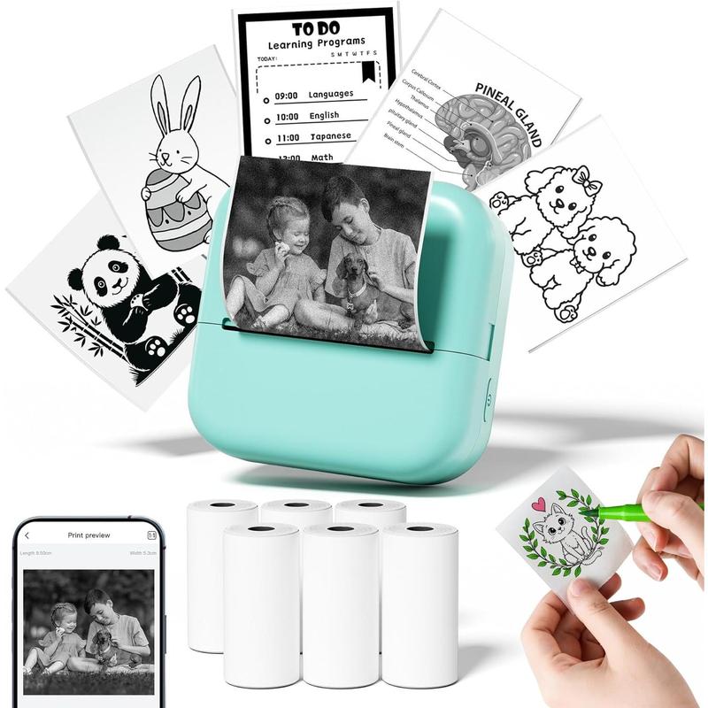 Portable Thermal Mini Printer with 7 Rolls Sticker Paper and Free App ...