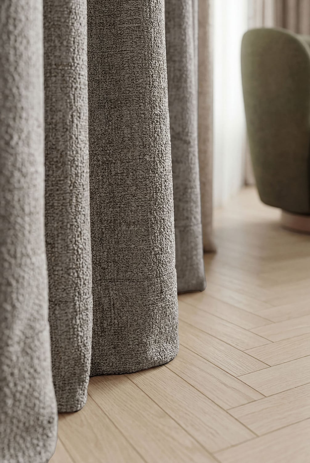 Custom Burano Linen-Blend Sheer S-Fold Single Panel Curtain & Track Set ...