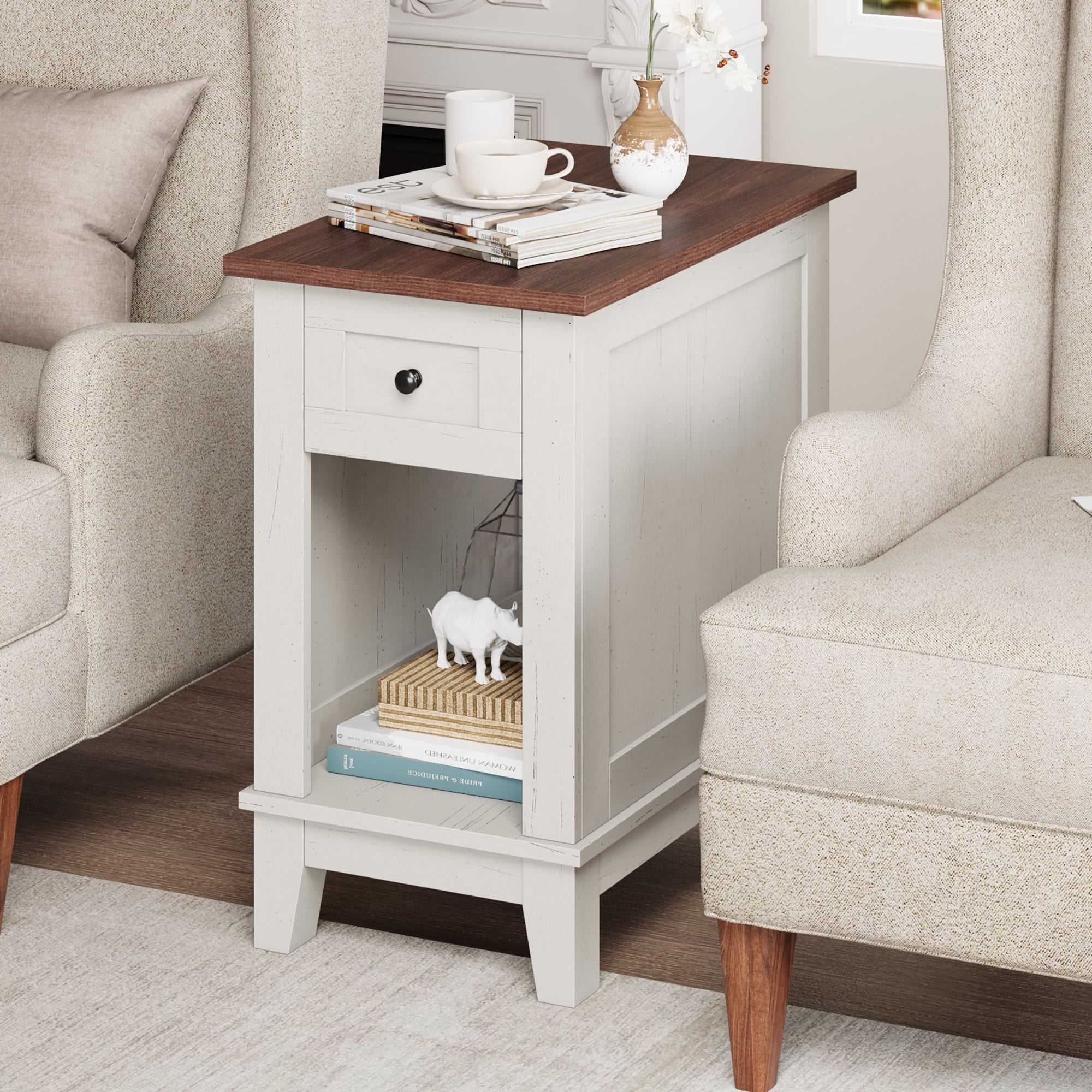 CABIHOME Narrow Side Table with Charging Station Small Farmhouse End ...