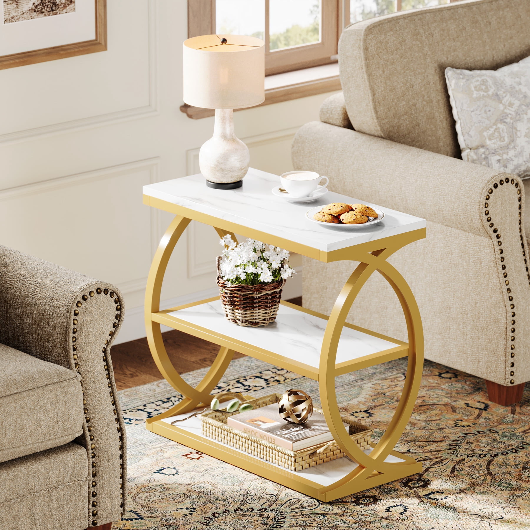 Tribesigns Narrow End Table with 3 Storage Shelves, Small Side Table ...