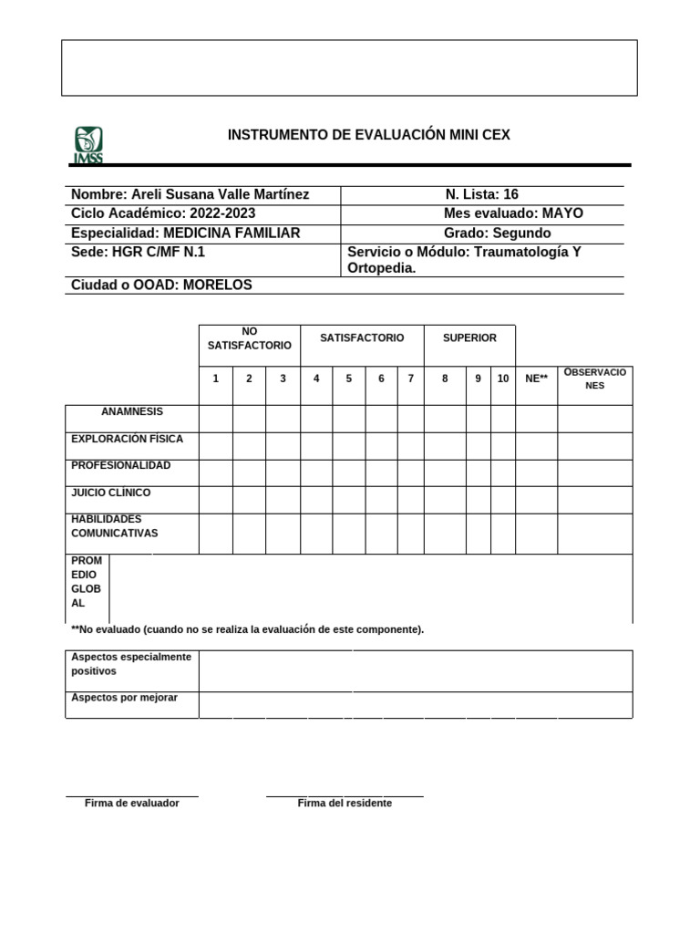 Mini Cex (mini clinical evaluation exercise) modificado en la ...