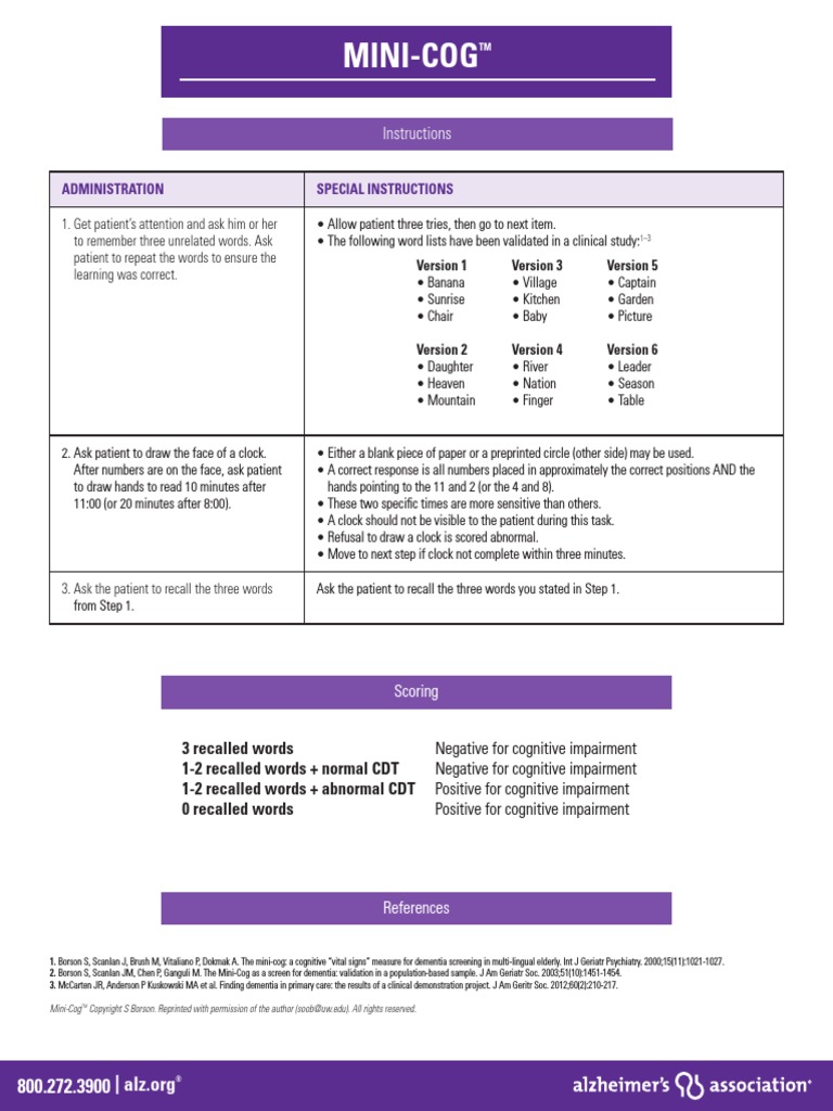 Comprehensive Guide to Mini-Cog Assessment Tool for Cognitive | Course Hero