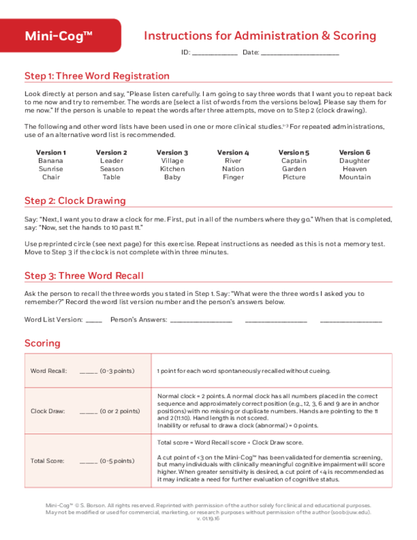Universal Mini Cog Form 011916 - Mini-Cog™ Instructions for ...