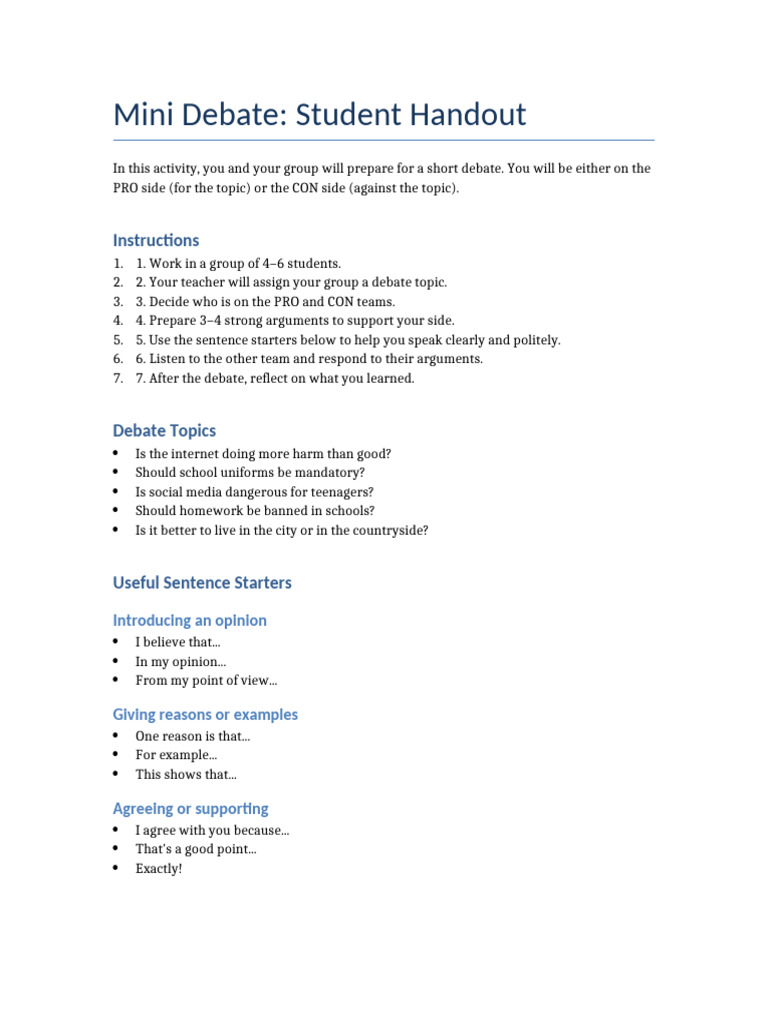 Worksheet - Speaking - Mini-Debate 34 - EnglishSauce