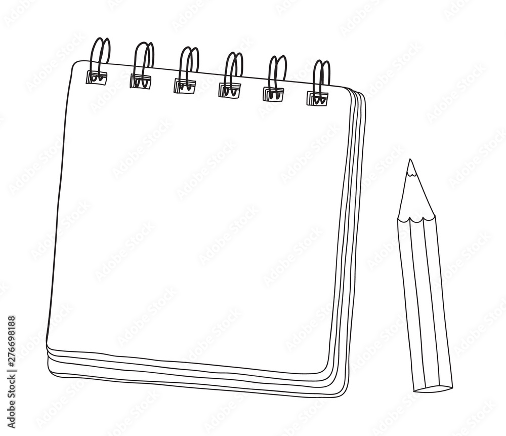 mini notebook and pencil hand drawn cut line art vector illustration ...