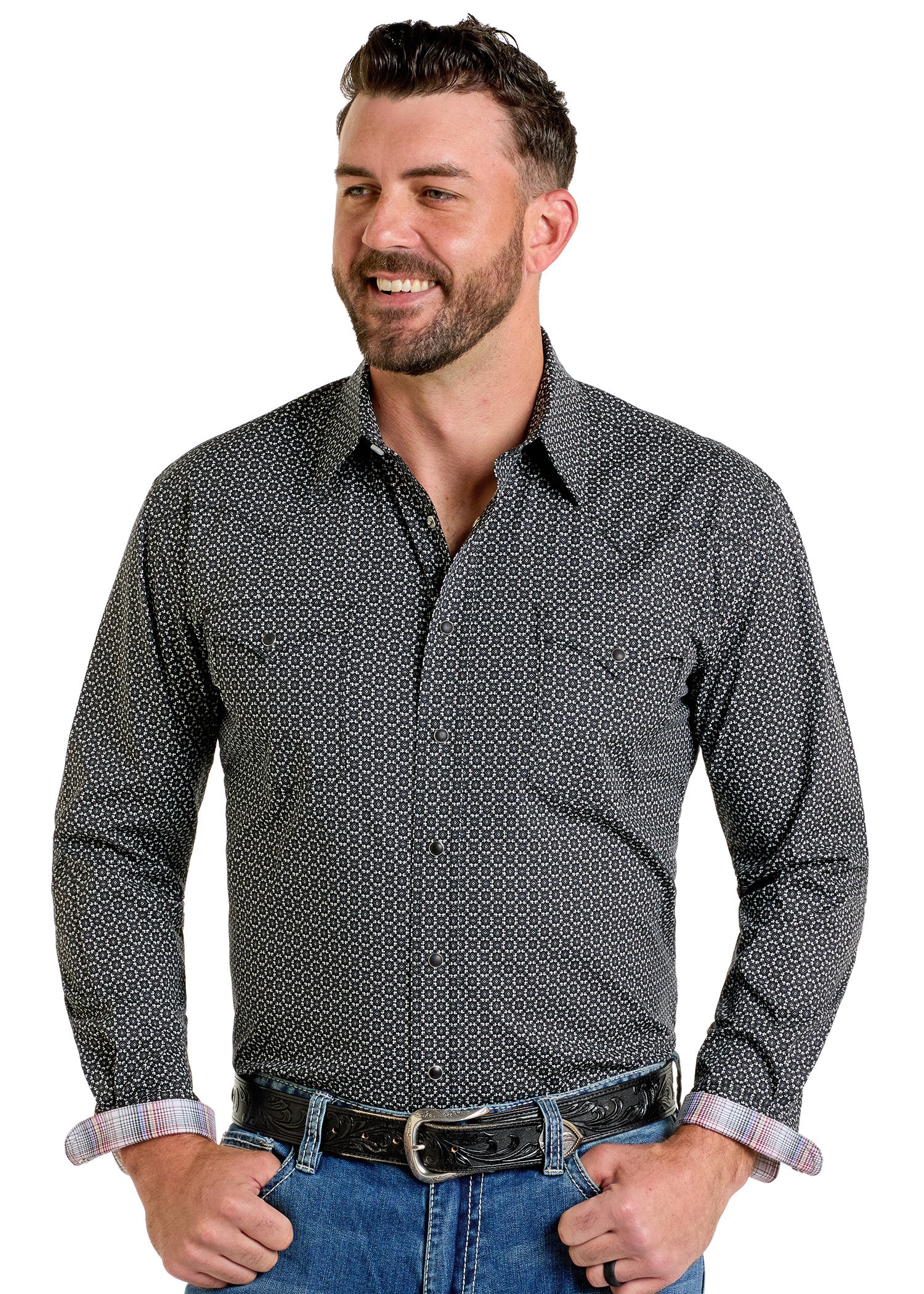 Men's Rough Stock Mini Geo Aztec Long Sleeve Snap Shirt | Panhandle Slim