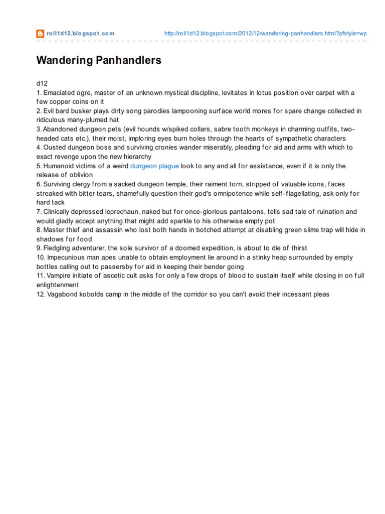 Roll Wandering - Panhandlers | PDF