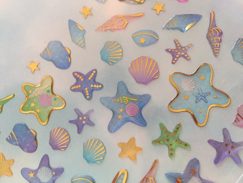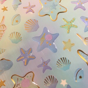 Mini Holographic Sea Shell Starfish Stickers, Bulk Mini Beach Stickers ...