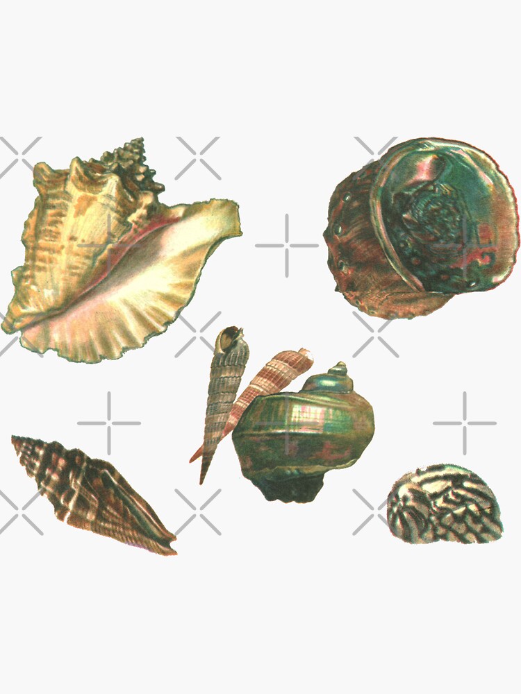 Maneki Vintage Mollusk Shell Seashell Art Sticker, Phone Decal Water ...
