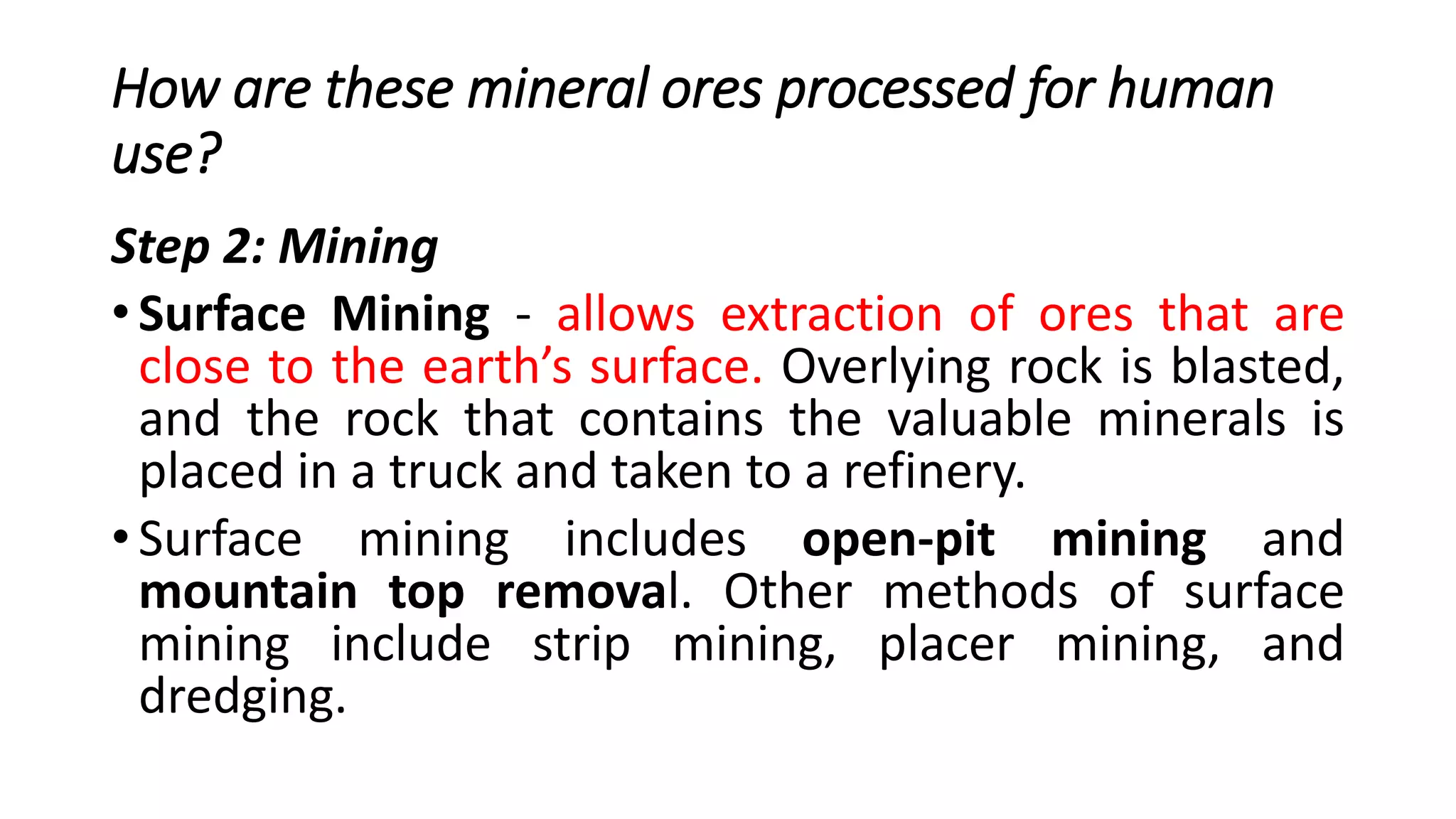 HOW ORE MINERALS ARE FOUND, MINED AND PROCESSED FOR HUMAN USE.pptx