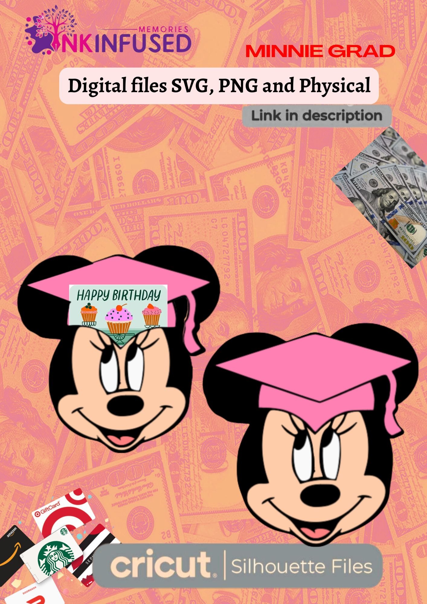 MINNIE GRAD MONEY/GIFTCARD HOLDER ( DIGITAL FILE) - Payhip