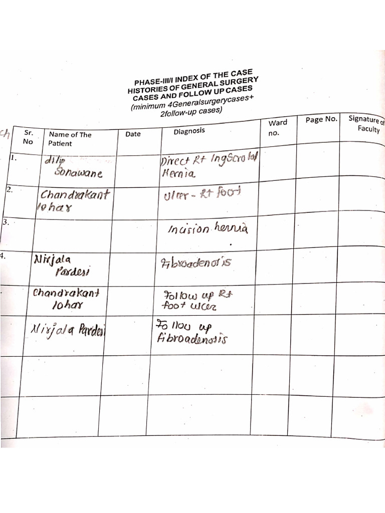 MINOR CASE CHARTS Word Document | PDF | Medical Specialties | Clinical ...