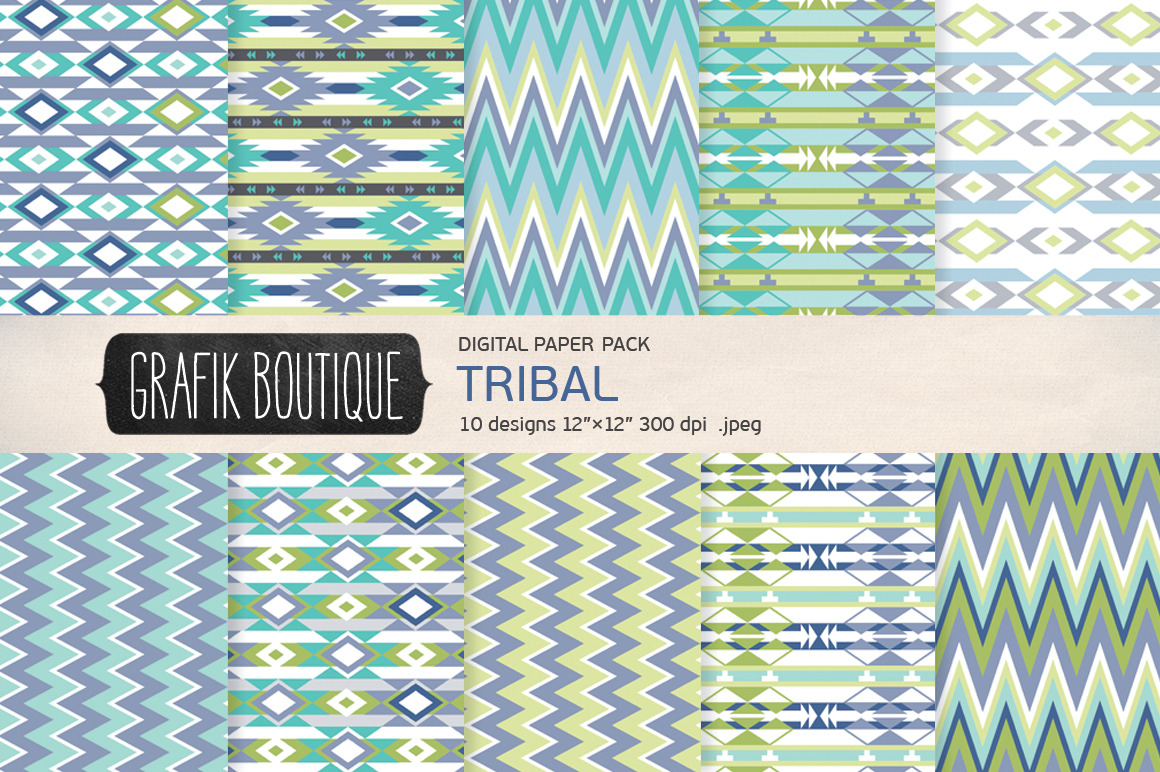 Pink and Mint Arrows digital paper Aztec Tribal patterns.