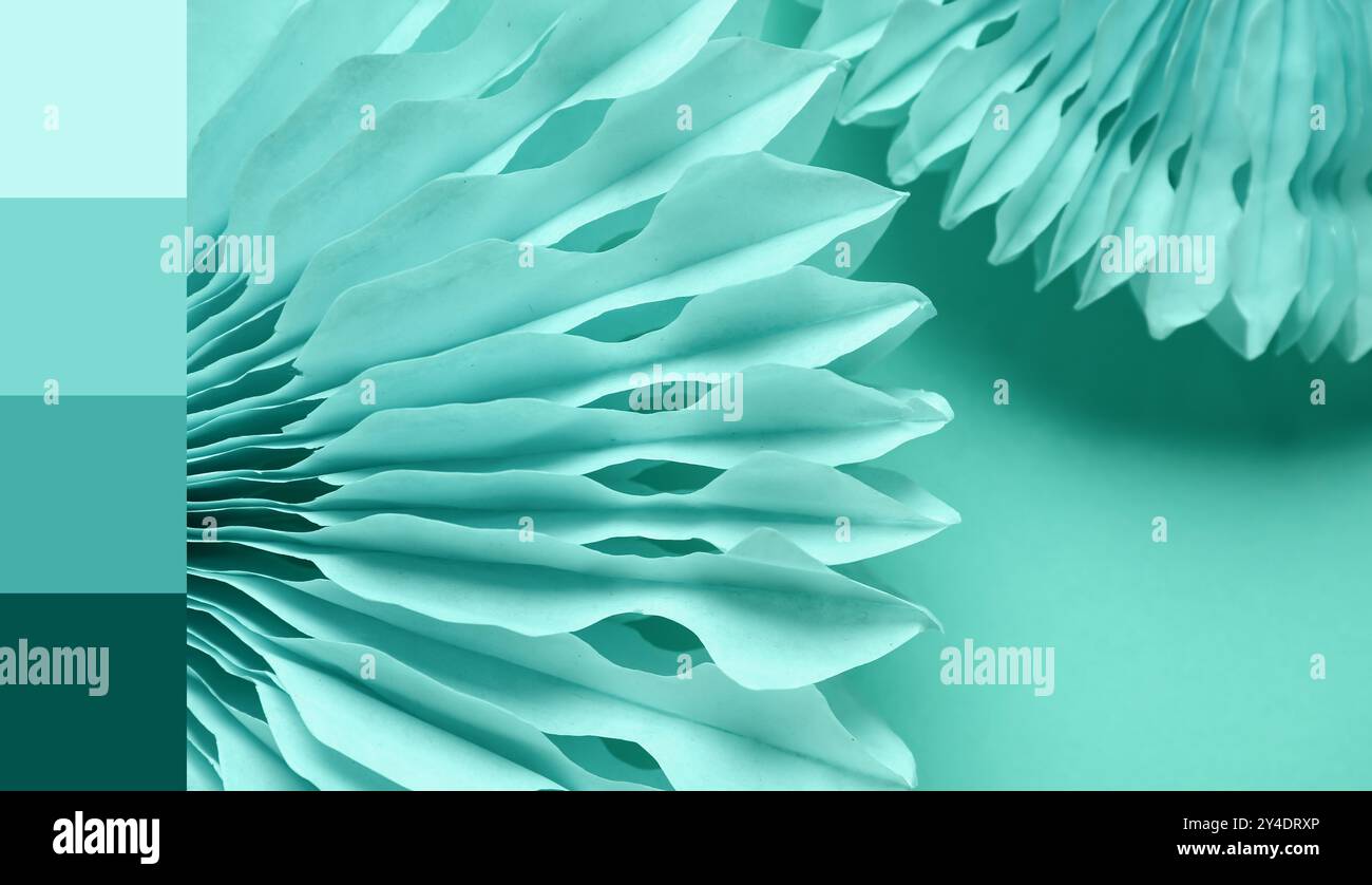 Paper flowers on mint background. Different color patterns Stock Photo ...