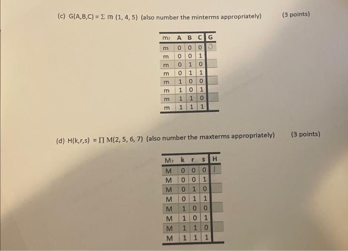 Solved (c) G(A,B,C)=Σm(1,4,5) (also number the minterms | Chegg.com