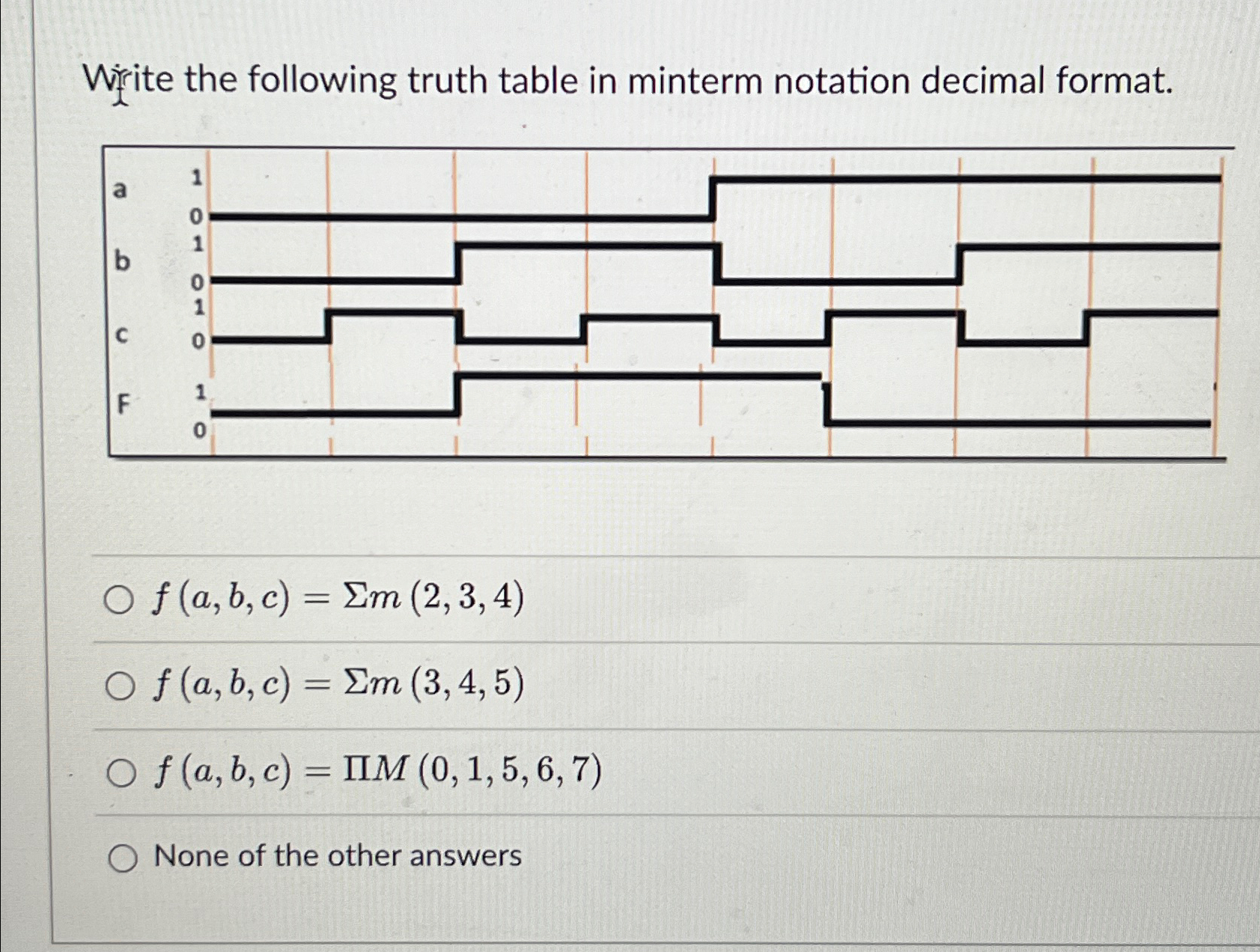 Solved Write the following truth table in minterm notaion: | Chegg.com