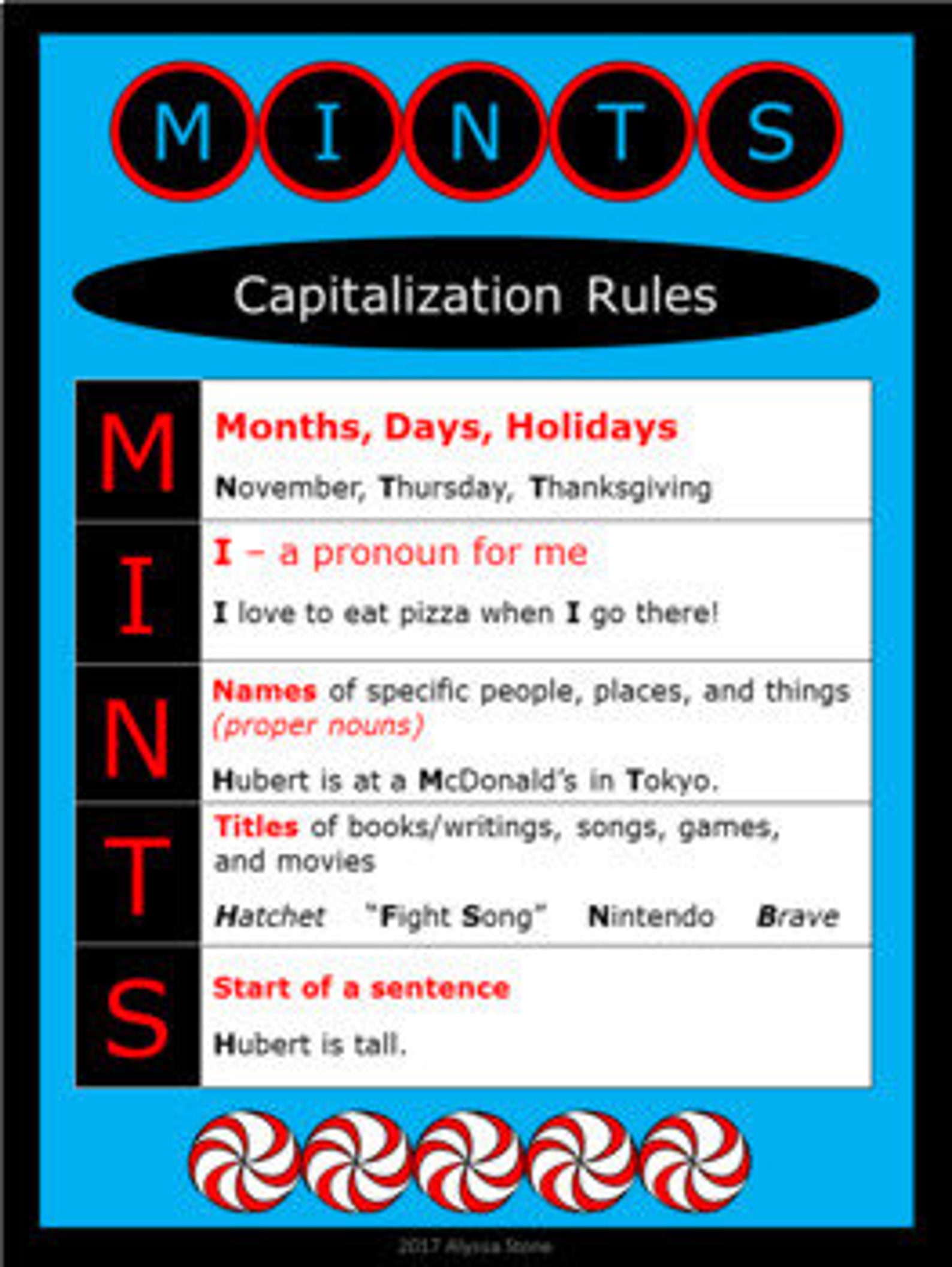 Capitalization Rules (MINTS) by Taylor's Teaching Tales | TPT