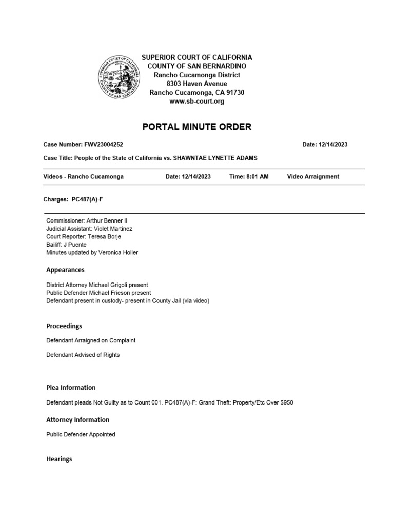 MINUTE ORDER SUPERIOR COURT OF CALIFORNIA ...